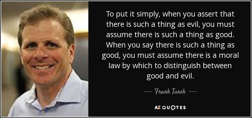 To put it simply, when you assert that there is such a thing as evil, you must assume there is such a thing as good. When you say there is such a thing as good, you must assume there is a moral law by which to distinguish between good and evil.