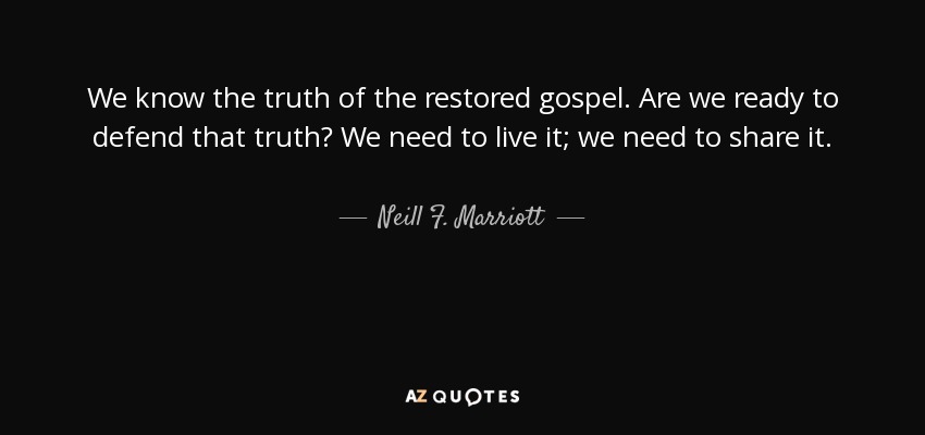 We know the truth of the restored gospel. Are we ready to defend that truth? We need to live it; we need to share it.