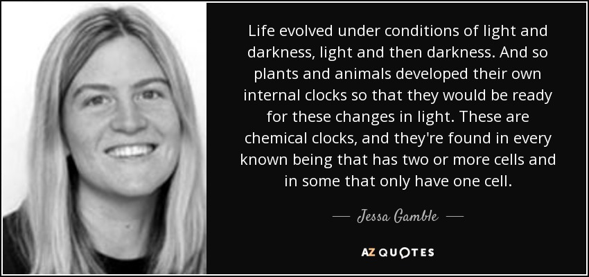 Life evolved under conditions of light and darkness, light and then darkness. And so plants and animals developed their own internal clocks so that they would be ready for these changes in light. These are chemical clocks, and they're found in every known being that has two or more cells and in some that only have one cell.