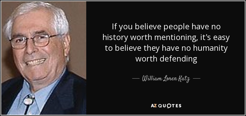 If you believe people have no history worth mentioning, it's easy to believe they have no humanity worth defending