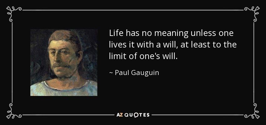 Life has no meaning unless one lives it with a will, at least to the limit of one's will.