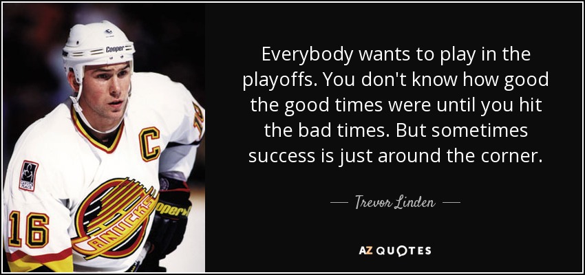 Everybody wants to play in the playoffs. You don't know how good the good times were until you hit the bad times. But sometimes success is just around the corner.