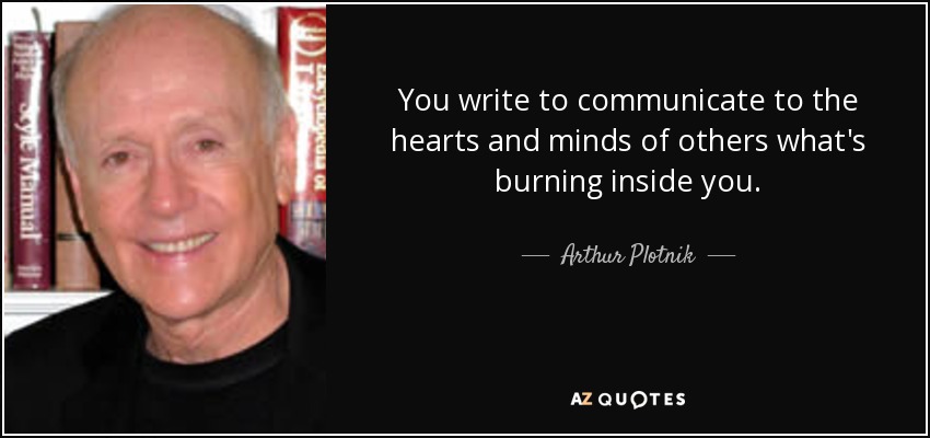 You write to communicate to the hearts and minds of others what's burning inside you.