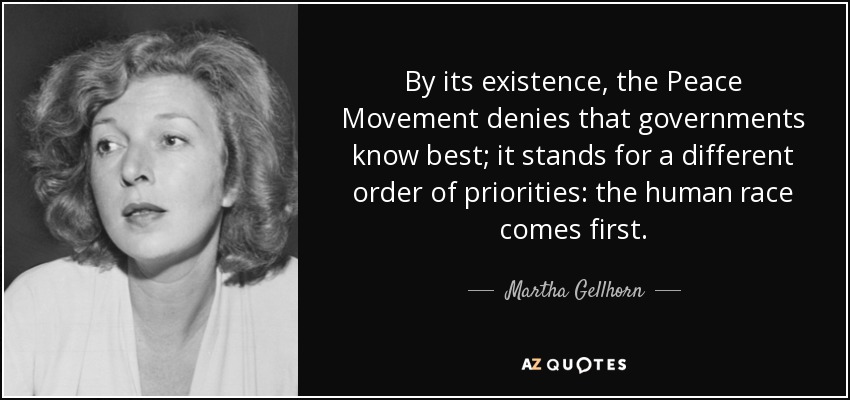 By its existence, the Peace Movement denies that governments know best; it stands for a different order of priorities: the human race comes first.