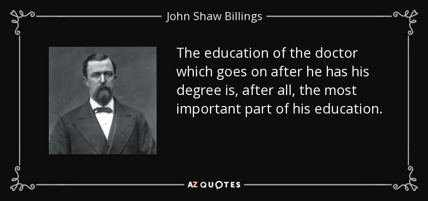 The education of the doctor which goes on after he has his degree is, after all, the most important part of his education.