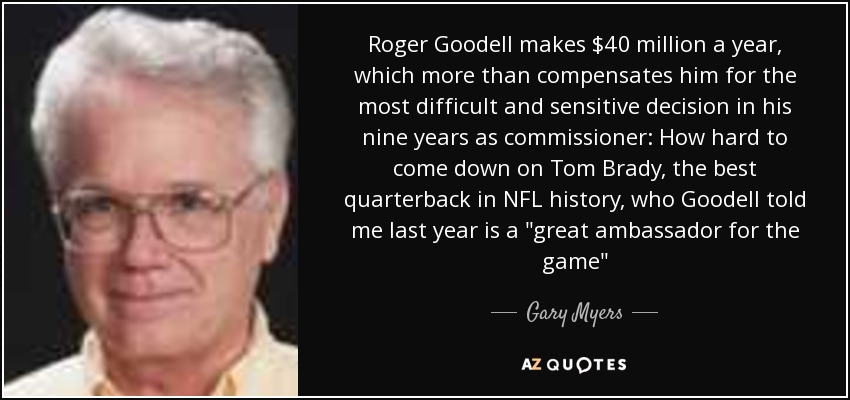 Roger Goodell makes $40 million a year, which more than compensates him for the most difficult and sensitive decision in his nine years as commissioner: How hard to come down on Tom Brady, the best quarterback in NFL history, who Goodell told me last year is a "great ambassador for the game"
