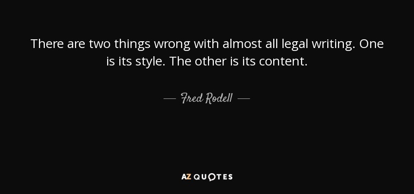 There are two things wrong with almost all legal writing. One is its style. The other is its content.