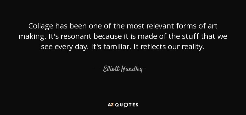 Collage has been one of the most relevant forms of art making. It's resonant because it is made of the stuff that we see every day. It's familiar. It reflects our reality.