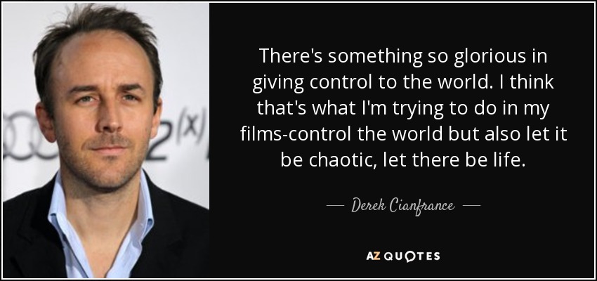 There's something so glorious in giving control to the world. I think that's what I'm trying to do in my films-control the world but also let it be chaotic, let there be life.