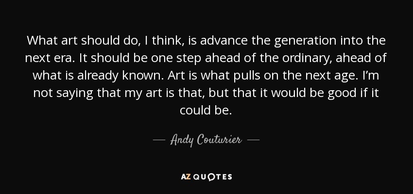 What art should do, I think, is advance the generation into the next era. It should be one step ahead of the ordinary, ahead of what is already known. Art is what pulls on the next age. I’m not saying that my art is that, but that it would be good if it could be.
