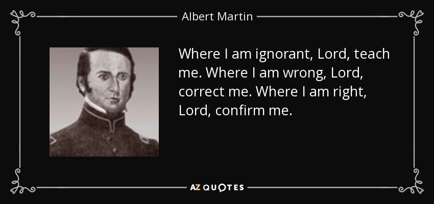 Where I am ignorant, Lord, teach me. Where I am wrong, Lord, correct me. Where I am right, Lord, confirm me.
