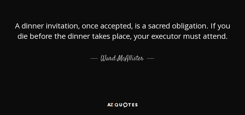 A dinner invitation, once accepted, is a sacred obligation. If you die before the dinner takes place, your executor must attend.