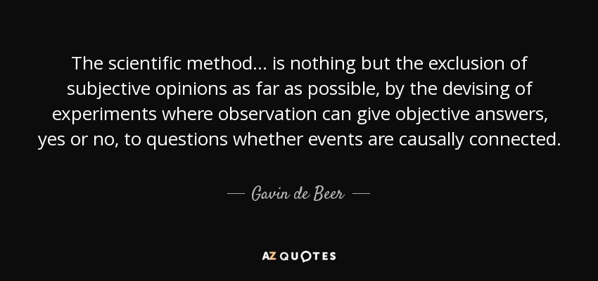 The scientific method ... is nothing but the exclusion of subjective opinions as far as possible, by the devising of experiments where observation can give objective answers, yes or no, to questions whether events are causally connected.