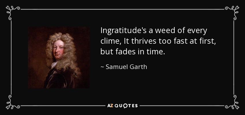 Ingratitude's a weed of every clime, It thrives too fast at first, but fades in time.
