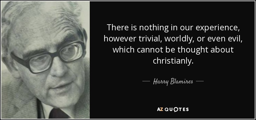 There is nothing in our experience, however trivial, worldly, or even evil, which cannot be thought about christianly.