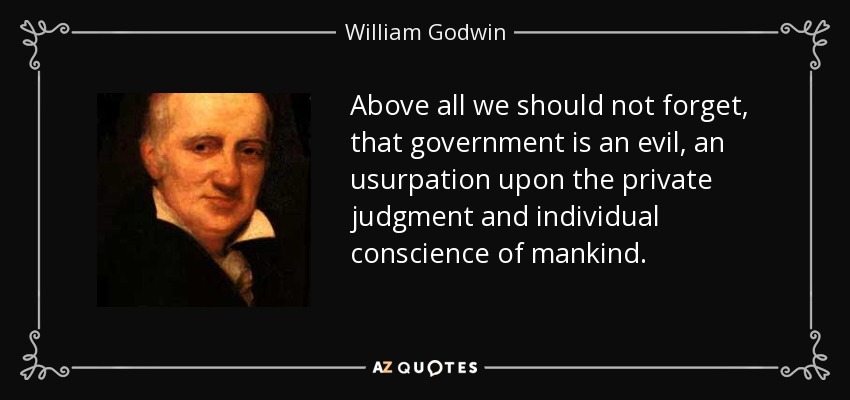 Above all we should not forget, that government is an evil, an usurpation upon the private judgment and individual conscience of mankind.
