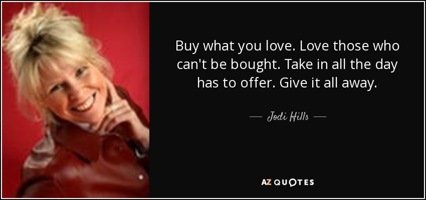 Buy what you love. Love those who can't be bought. Take in all the day has to offer. Give it all away.