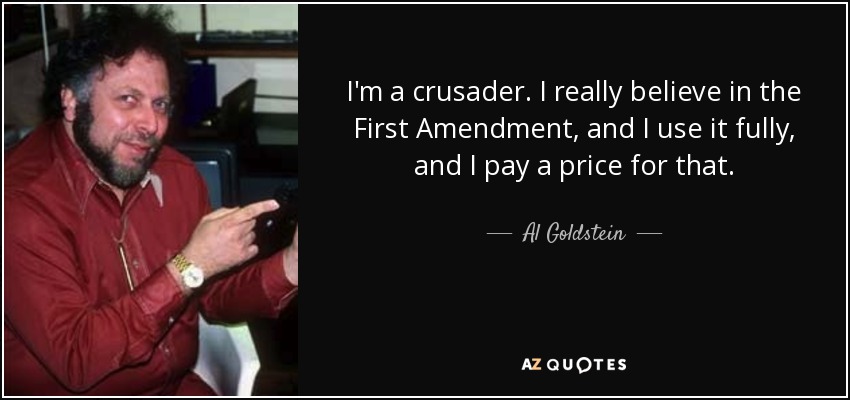 I'm a crusader. I really believe in the First Amendment, and I use it fully, and I pay a price for that.