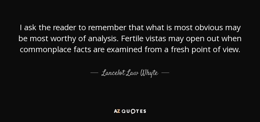 I ask the reader to remember that what is most obvious may be most worthy of analysis. Fertile vistas may open out when commonplace facts are examined from a fresh point of view.