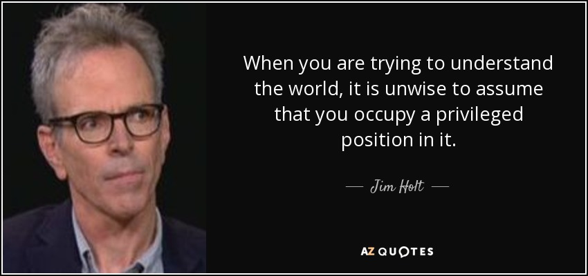 When you are trying to understand the world, it is unwise to assume that you occupy a privileged position in it.