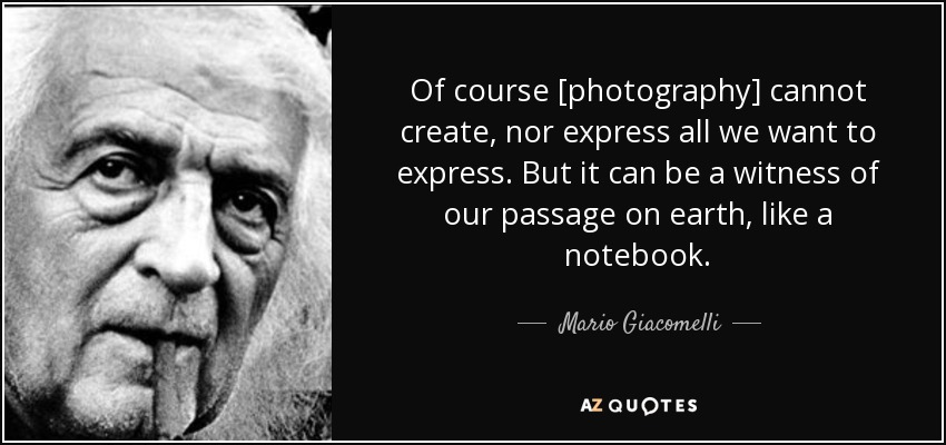 Of course [photography] cannot create, nor express all we want to express. But it can be a witness of our passage on earth, like a notebook.
