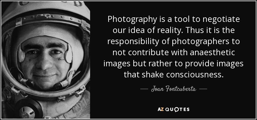 Photography is a tool to negotiate our idea of reality. Thus it is the responsibility of photographers to not contribute with anaesthetic images but rather to provide images that shake consciousness.