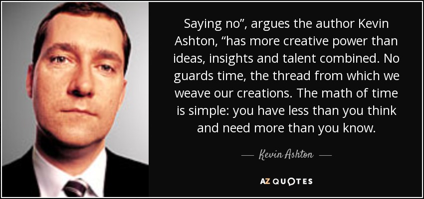 Saying no”, argues the author Kevin Ashton, “has more creative power than ideas, insights and talent combined. No guards time, the thread from which we weave our creations. The math of time is simple: you have less than you think and need more than you know.