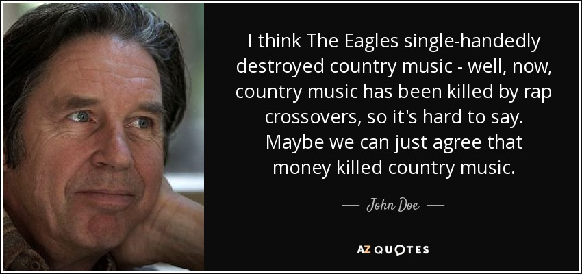 I think The Eagles single-handedly destroyed country music - well, now, country music has been killed by rap crossovers, so it's hard to say. Maybe we can just agree that money killed country music.