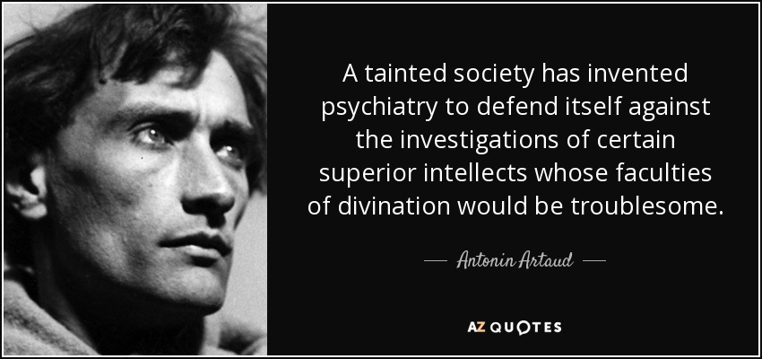 A tainted society has invented psychiatry to defend itself against the investigations of certain superior intellects whose faculties of divination would be troublesome.
