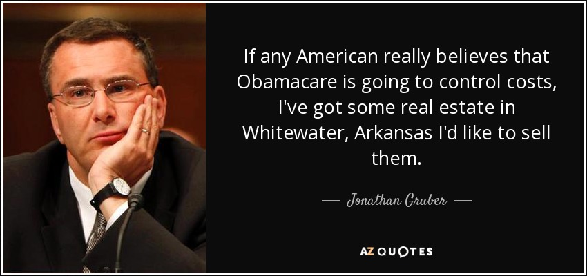 If any American really believes that Obamacare is going to control costs, I've got some real estate in Whitewater, Arkansas I'd like to sell them.
