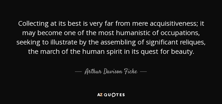 Collecting at its best is very far from mere acquisitiveness; it may become one of the most humanistic of occupations, seeking to illustrate by the assembling of significant reliques, the march of the human spirit in its quest for beauty.