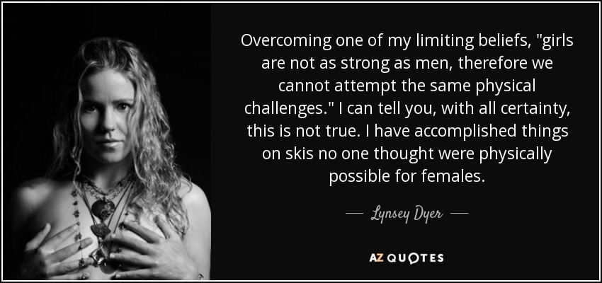 Overcoming one of my limiting beliefs, "girls are not as strong as men, therefore we cannot attempt the same physical challenges." I can tell you, with all certainty, this is not true. I have accomplished things on skis no one thought were physically possible for females.