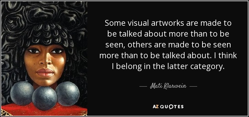 Some visual artworks are made to be talked about more than to be seen, others are made to be seen more than to be talked about. I think I belong in the latter category.
