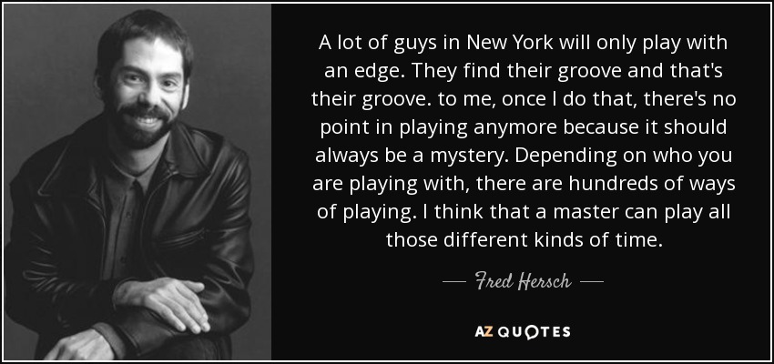 A lot of guys in New York will only play with an edge. They find their groove and that's their groove. to me, once I do that, there's no point in playing anymore because it should always be a mystery. Depending on who you are playing with, there are hundreds of ways of playing. I think that a master can play all those different kinds of time.