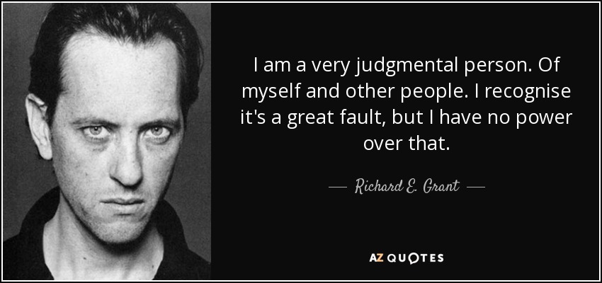I am a very judgmental person. Of myself and other people. I recognise it's a great fault, but I have no power over that.