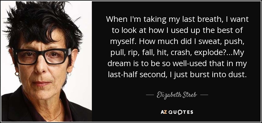 When I'm taking my last breath, I want to look at how I used up the best of myself. How much did I sweat, push, pull, rip, fall, hit, crash, explode?...My dream is to be so well-used that in my last-half second, I just burst into dust.
