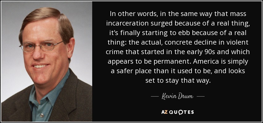 In other words, in the same way that mass incarceration surged because of a real thing, it's finally starting to ebb because of a real thing: the actual, concrete decline in violent crime that started in the early 90s and which appears to be permanent. America is simply a safer place than it used to be, and looks set to stay that way.