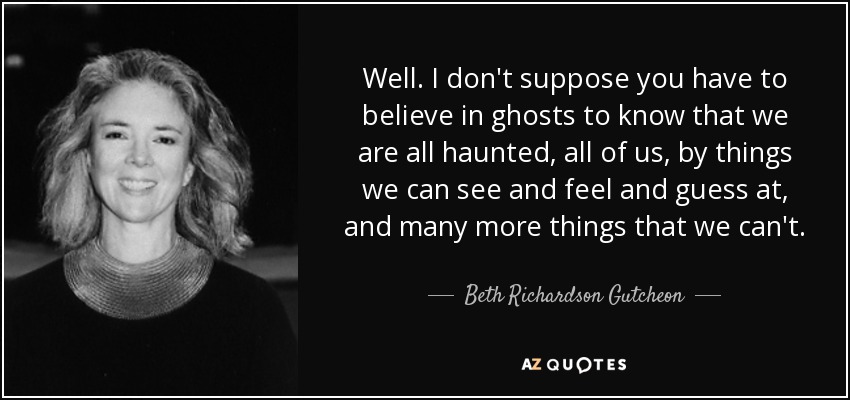 Well. I don't suppose you have to believe in ghosts to know that we are all haunted, all of us, by things we can see and feel and guess at, and many more things that we can't.