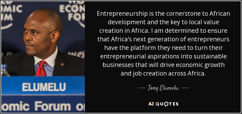 Entrepreneurship is the cornerstone to African development and the key to local value creation in Africa. I am determined to ensure that Africa's next generation of entrepreneurs have the platform they need to turn their entrepreneurial aspirations into sustainable businesses that will drive economic growth and job creation across Africa.