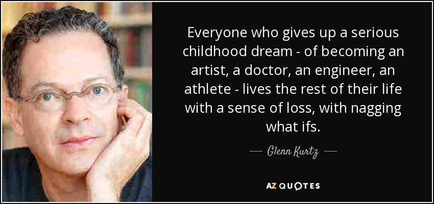 Everyone who gives up a serious childhood dream - of becoming an artist, a doctor, an engineer, an athlete - lives the rest of their life with a sense of loss, with nagging what ifs.