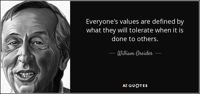 Everyone's values are defined by what they will tolerate when it is done to others.