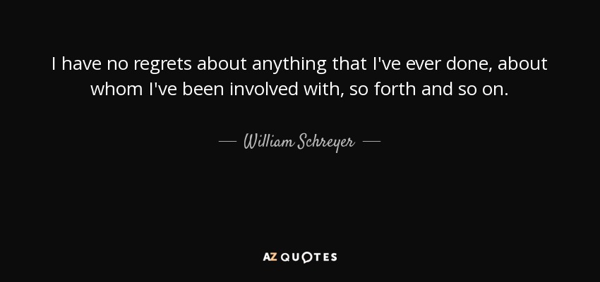 I have no regrets about anything that I've ever done, about whom I've been involved with, so forth and so on.
