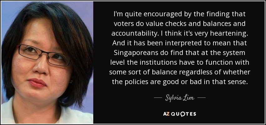 I'm quite encouraged by the finding that voters do value checks and balances and accountability. I think it's very heartening. And it has been interpreted to mean that Singaporeans do find that at the system level the institutions have to function with some sort of balance regardless of whether the policies are good or bad in that sense.
