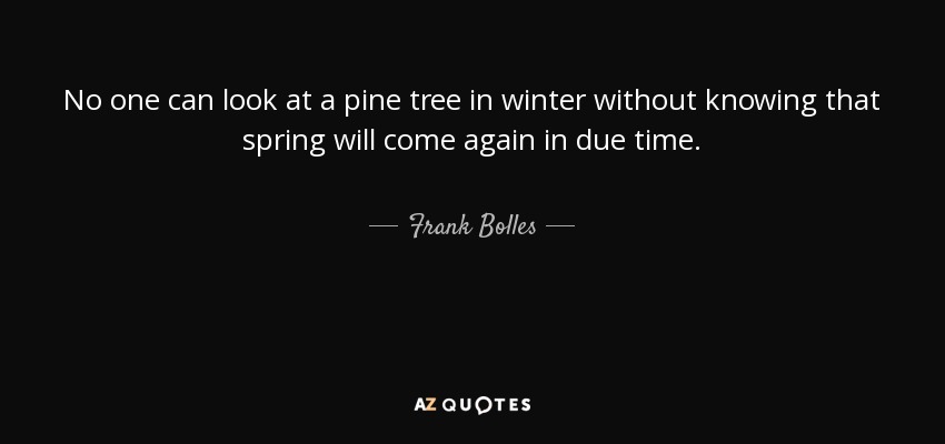 No one can look at a pine tree in winter without knowing that spring will come again in due time.