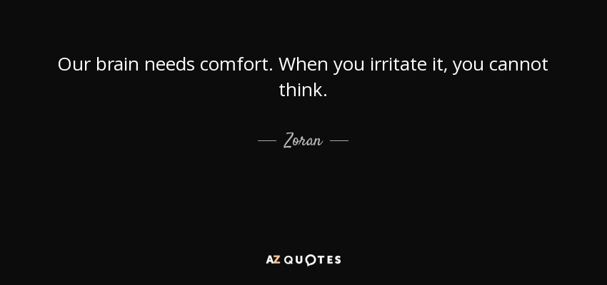 Our brain needs comfort. When you irritate it, you cannot think.