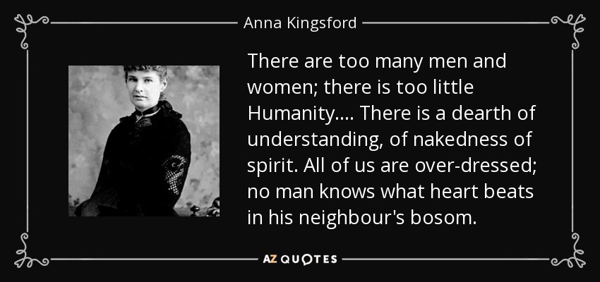 There are too many men and women; there is too little Humanity. ... There is a dearth of understanding, of nakedness of spirit. All of us are over-dressed; no man knows what heart beats in his neighbour's bosom.