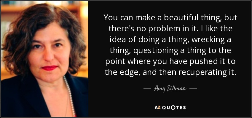 You can make a beautiful thing, but there's no problem in it. I like the idea of doing a thing, wrecking a thing, questioning a thing to the point where you have pushed it to the edge, and then recuperating it.