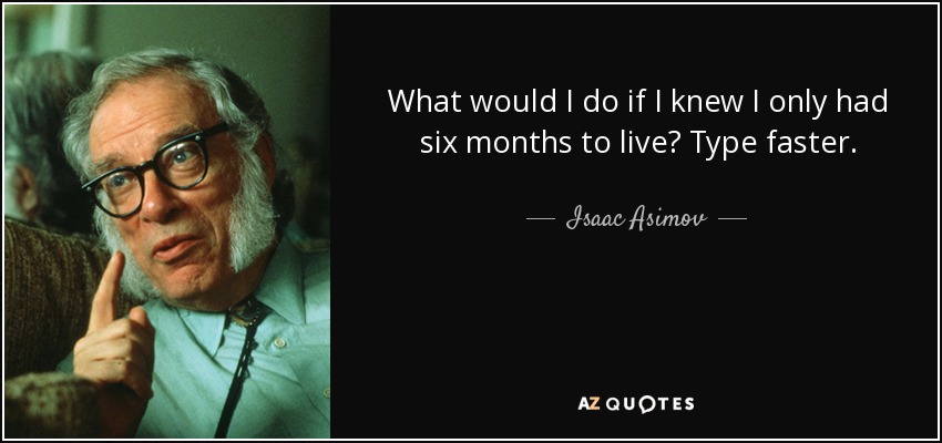 It took me thirty-six years; and, in some fifty stories, ranging in length from short-shorts to novels, I think I must have touched, in one way or another, on every aspect of computers and computerization. And (mark this!) I did it without ever knowing anything at all about computers in any real sense. To this day, I don't. I am totally inept with machinery... on my typewriter I turn out books at the contemptible rate of one a month