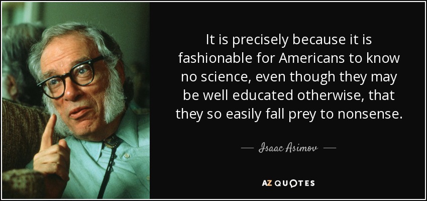 It is precisely because it is fashionable for Americans to know no science, even though they may be well educated otherwise, that they so easily fall prey to nonsense.