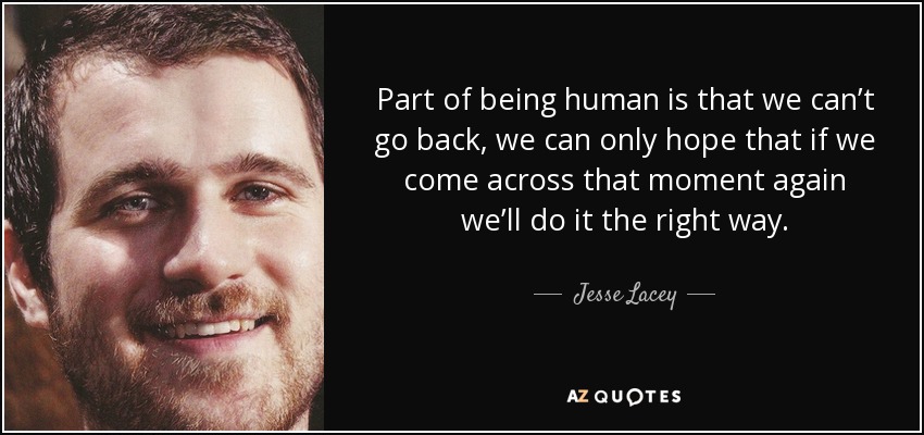 Part of being human is that we can’t go back, we can only hope that if we come across that moment again we’ll do it the right way.